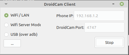 Cliente GUI de DroidCam en Linux. Aquí ingresamos IP y puerto.¶